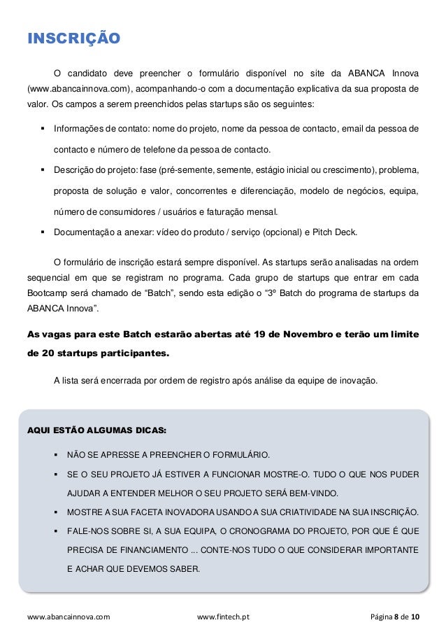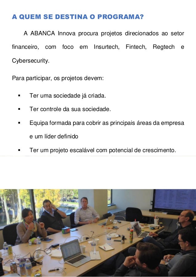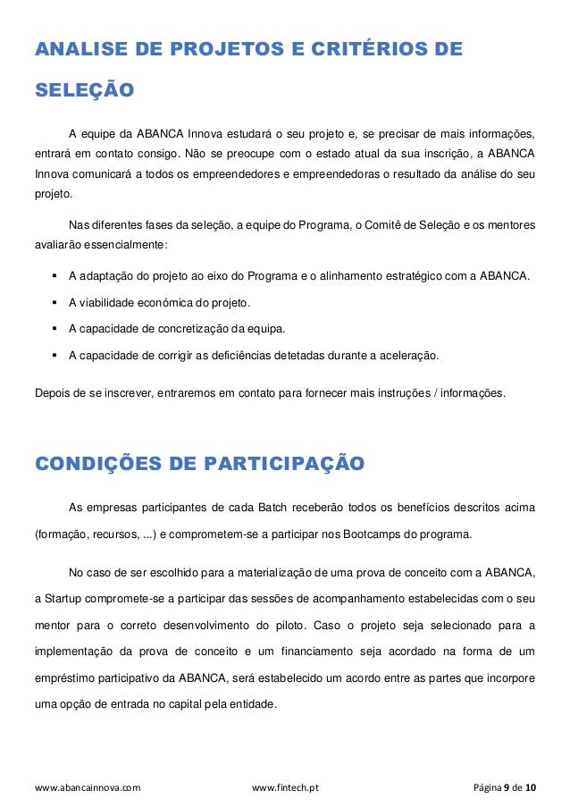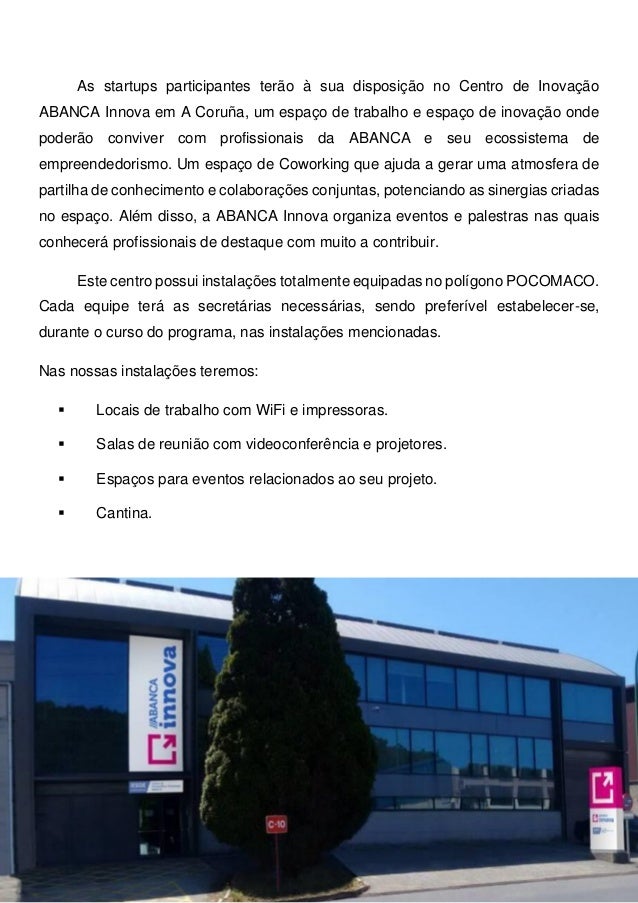Startup. Além disso, entre as startups selecionadas para o programa, as mais interessantes para a entidade serão escolhidas para desenvolvimento e financiamento, quando apropriado, de uma prova de conceito na ABANCA.