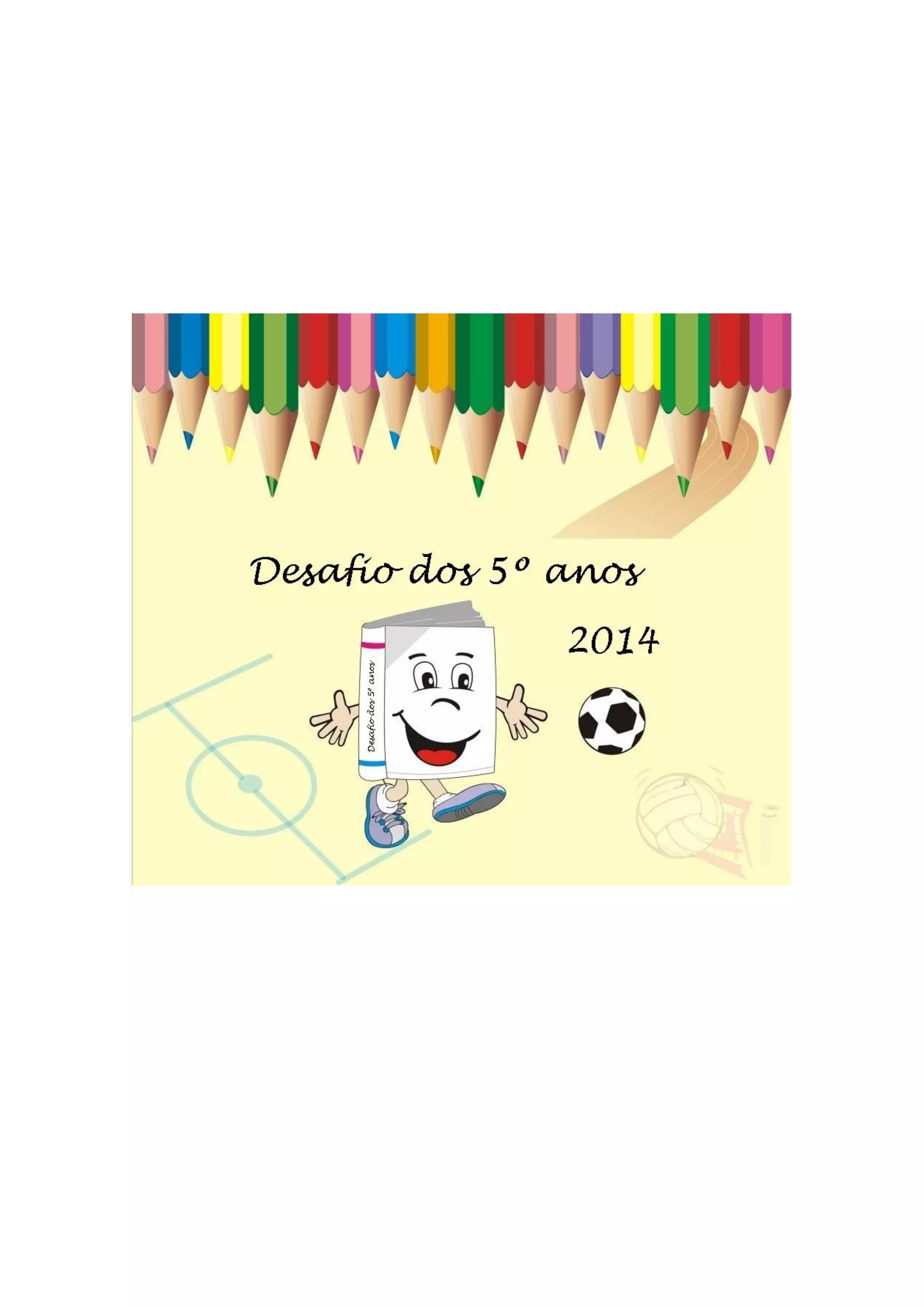 O documento descreve o cronograma de dois desafios esportivos para alunos do 5o ano: futsal e tênis de mesa. No desafio de futsal, as equipes dos 5os anos jogarão entre si em partidas masculinas e femininas. No desafio de tênis de mesa, os alunos estão divididos em chaves por gênero e disputarão partidas individuais durante a manhã e tarde, com os vencedores se enfrentando ao final. A equipe ou aluno que vencer mais partidas será declarado campeão.