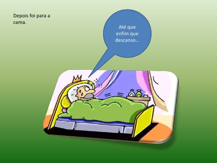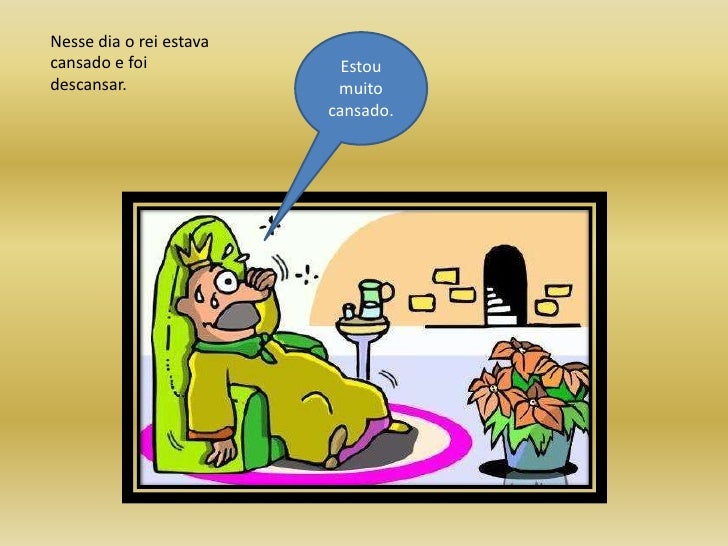8. 8. Nesse dia o rei estavacansado e foi Estoudescansar. muito cansado.