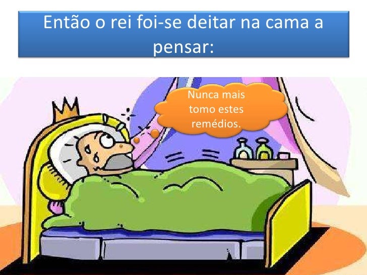 12. 12. Então o rei foi-se deitar na cama a pensar: Nunca mais tomo estes remédios.
