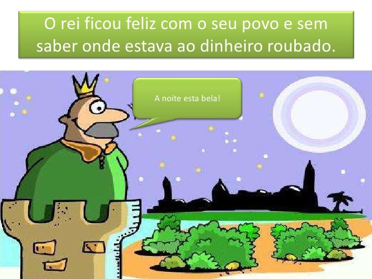 14. 14. O rei ficou feliz com o seu povo e semsaber onde estava ao dinheiro roubado. A noite esta bela!