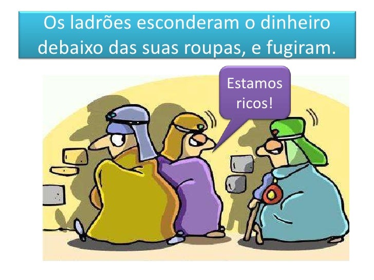 7. 7. Os ladrões esconderam o dinheirodebaixo das suas roupas, e fugiram. Estamos ricos!