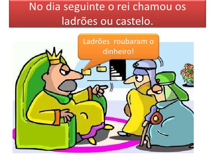 8. 8. No dia seguinte o rei chamou os ladrões ou castelo. Ladrões roubaram o dinheiro!