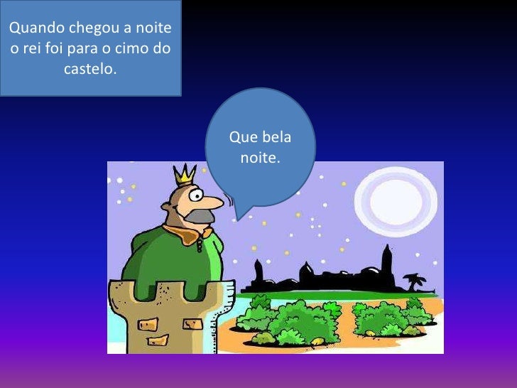 13. 13. Quando chegou a noiteo rei foi para o cimo do castelo. Que bela noite.