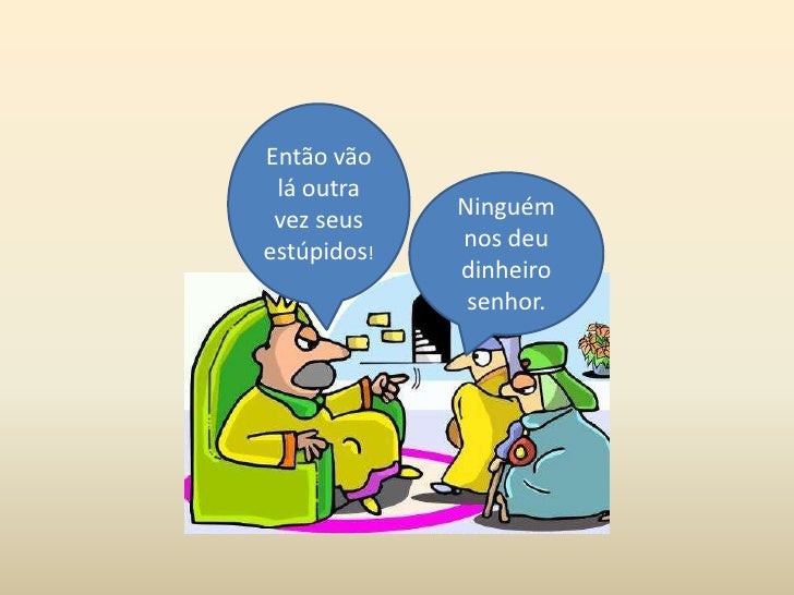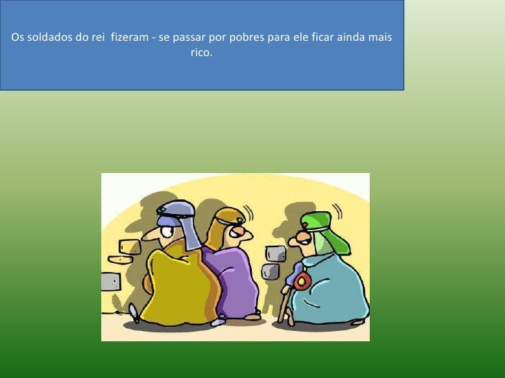 7. 7. Os soldados do rei fizeram - se passar por pobres para ele ficar ainda mais rico.