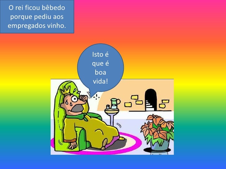 9. 9. O rei ficou bêbedo porque pediu aosempregados vinho. Isto é que é boa vida!