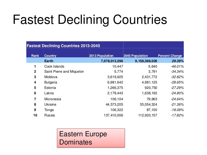 Overview of population from 2013 to 2045