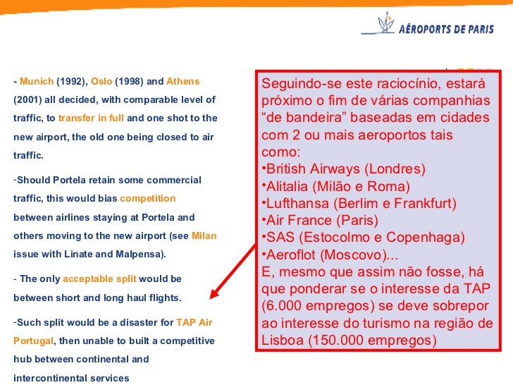 E também já se debruçaram sobre a possibilidade da Portela + 1 se, como será lógico a IE da Portela com uma 1ª Fase do NAL(SEMPRE A SUL DO TEJO)? Sendo consequente a progressiva desactivação da Portela, ficando para os Low Cost, e crescimento estruturado da Nova Unidade a Sul do Tejo (RIO FRIO ou ALCOCHETE), sendo RIO FRIO sempre preferivel porque se tem que pensar que a desactivação do campo de tiro implica a criação de estrutura similar moutro local com os inerentes custos.