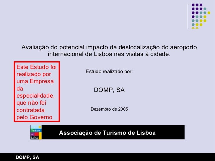 Este Estudo analisa os impactos económicos e turísticos do aeroporto da Ota e rebate os argumentos apresentados pelos consultores do Governo contra a abertura do 2º aeroporto de Lisboa no Montijo