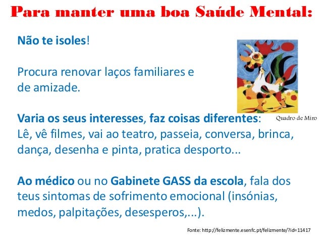 Apresentação sobre a importância da saúde mental para as aulas de Cidadania, no âmbito do PESS.