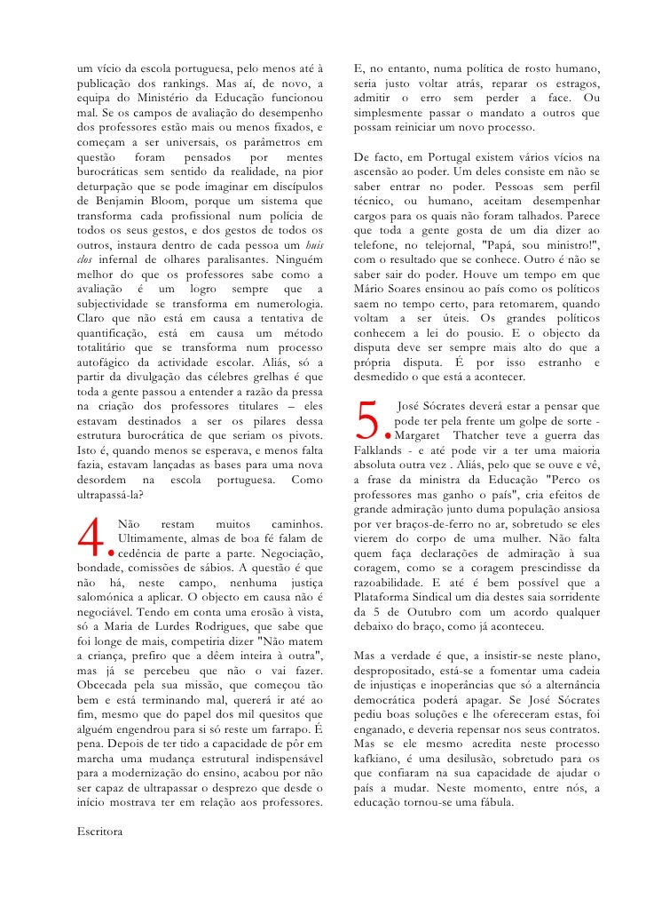 Educação: os critérios da excelência. Do jornal Público, 9 de Janeiro 2008, p. 38