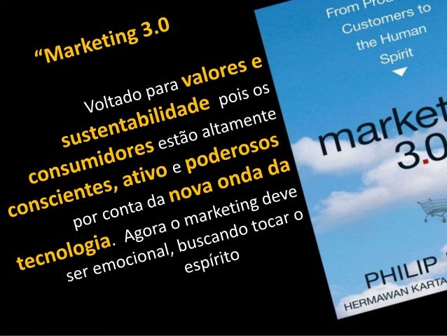 A palestra apresenta as novas tendências do marketing 3.0 relacionadas aos Cenários Mercadológicos, demonstrando sua aplicabilidade nas empresas, visando crescimento financeiro, fortalecimento da marca e melhoria no relacionamento com os clientes.