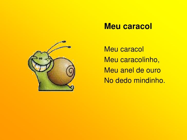 11. 11. Meu caracol<br />Meu caracol<br />Meu caracolinho,<br />Meu anel de ouro<br />No dedo mindinho.<br />