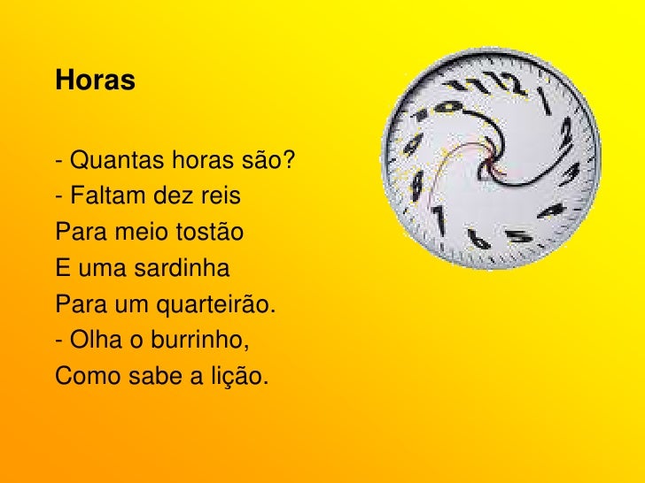 20. 20. Faltam dez reis</li></ul>Para meio tostão<br />E uma sardinha<br />Para um quarteirão.<br /><ul><li> Olha o burrinho,</li></ul>Como sabe a lição.<br />