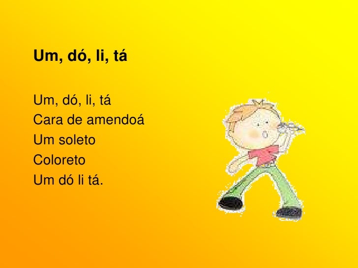 47. 47. Um, dó, li, tá<br />Um, dó, li, tá<br />Cara de amendoá<br />Um soleto<br />Coloreto<br />Um dó li tá.<br />
