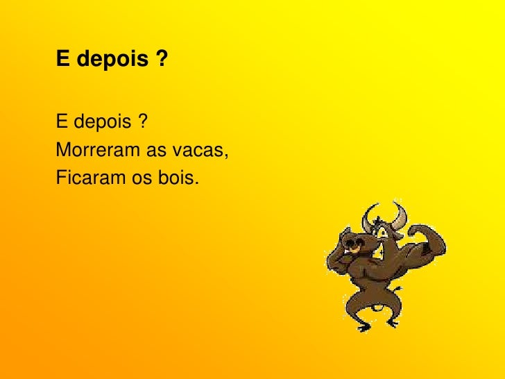 78. 78. E depois ?<br />E depois ?<br />Morreram as vacas,<br />Ficaram os bois.<br />