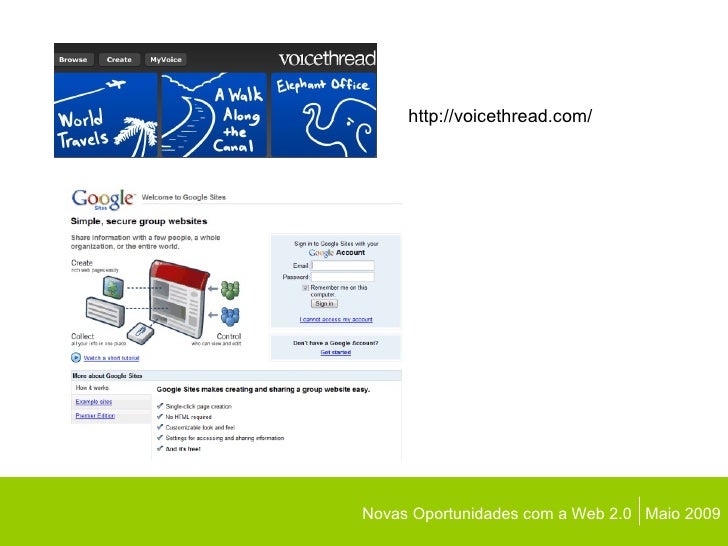 Novas Oportunidades com a Web 2.0  Maio 2009 http://voicethread.com/