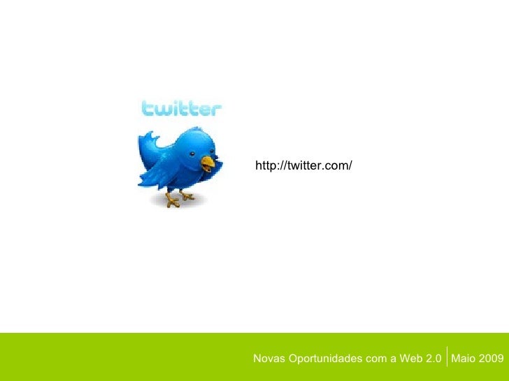 Novas Oportunidades com a Web 2.0  Maio 2009 http://twitter.com/