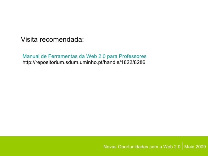 Novas Oportunidades com a Web 2.0  Maio 2009 Visita recomendada: Manual de  Ferramentas   da  Web 2.0  para   Professores ...