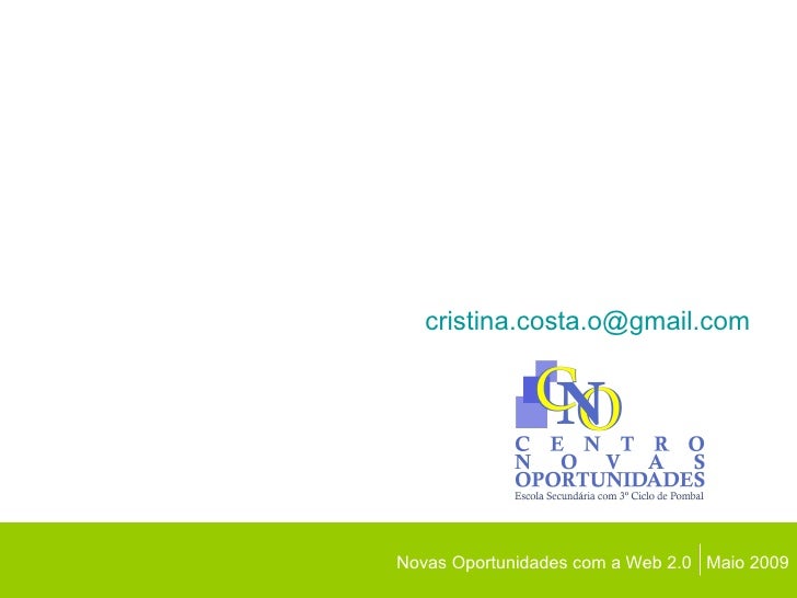 Novas Oportunidades  com a Web 2.0 Cristina Costa CNO da Escola Secundária com 3º Ciclo de Pombal