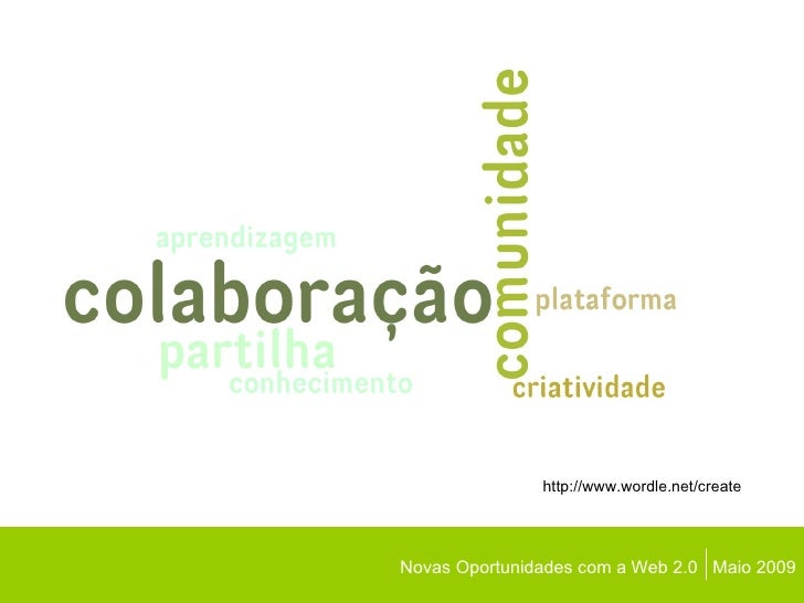 Novas Oportunidades com a Web 2.0  Maio 2009 http://www.wordle.net/create