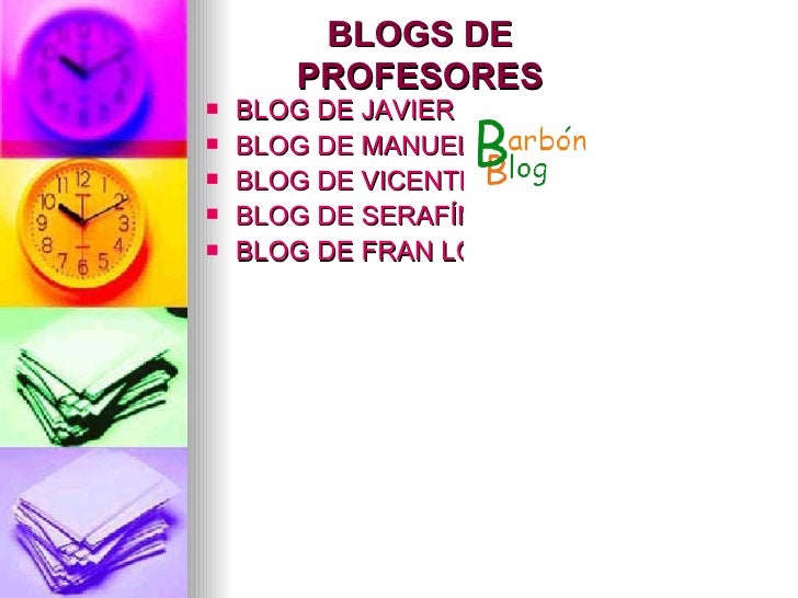 3. 3. BLOGS DE PROFESORES <ul><li>BLOG DE JAVIER PÉREZ </li></ul><ul><li>BLOG DE MANUEL LÓPEZ </li></ul><ul><li>BLOG DE VICENTE SÁNCHEZ </li></ul><ul><li>BLOG DE SERAFÍN VÁZQUEZ </li></ul><ul><li>BLOG DE FRAN LOUREIRO </li></ul>