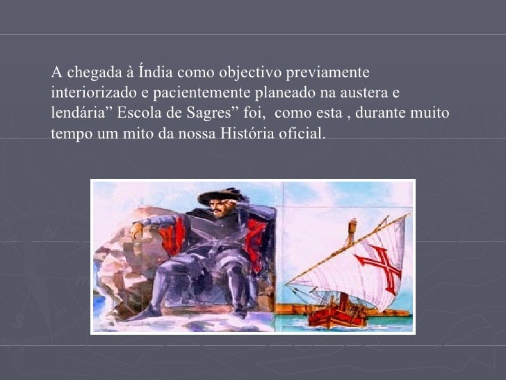 14. 14. A chegada à Índia como objectivo previamente interiorizado e pacientemente planeado na austera e lendária” Escola de Sagres” foi, como esta , durante muito tempo um mito da nossa História oficial.