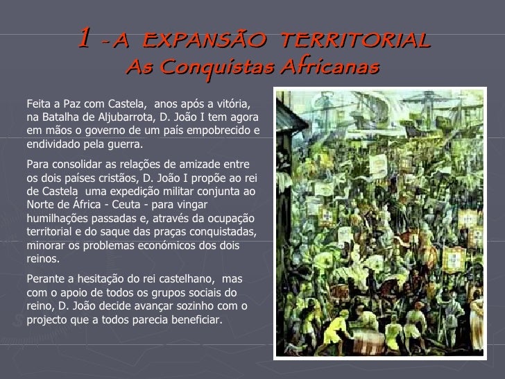 1   -  A  EXPANSÃO  TERRITORIAL As Conquistas Africanas Feita a Paz com Castela,  anos após a vitória, na Batalha de Aljub...
