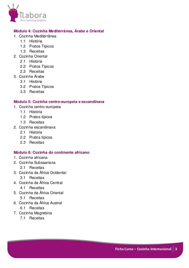 Este curso está destinado a todas as pessoas interessadas em aprender sobre a cozinha internacional. Descrever e preparar os principais pratos do continente americano, do continente africano, além de comida Mediterrânea, Árabe, Oriental, centro-europeia e escandinava.