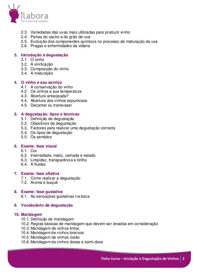 Adquirir conhecimento das principais formas de envelhecimento e maturação dos vinhos. Conhecer a metodologia da degustação de vinhos. Conhecer os sentidos que formam parte da degustação de um vinho. Saber reconhecer um vinho por sua cor, seu cheiro e o seu sabor.