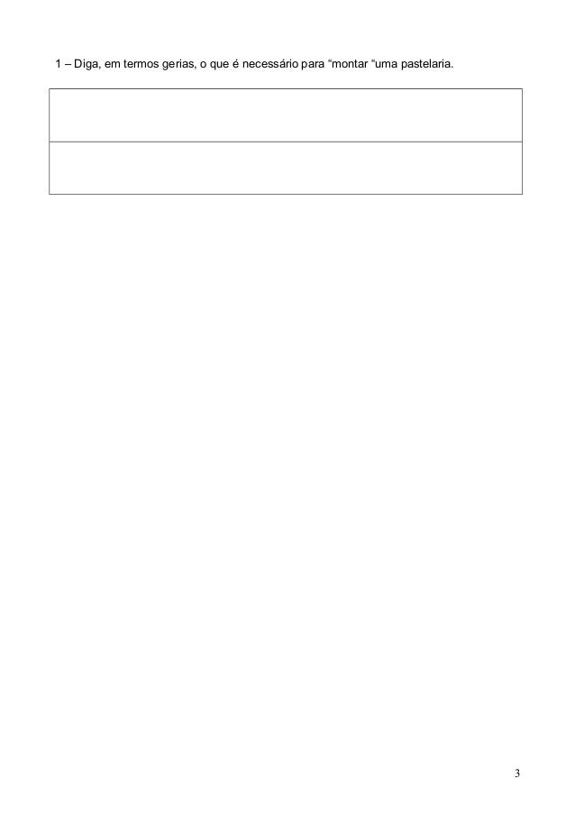 3. 3. 1 – Diga, em termos gerias, o que é necessário para “montar “uma pastelaria. 3