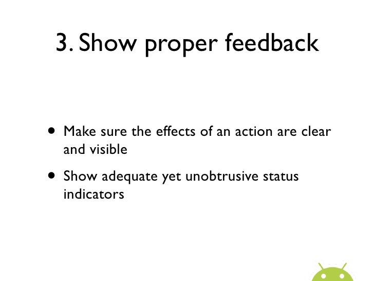 15. 15. 3. Show proper feedback• Make sure the effects of an action are clear and visible• Show adequate yet unobtrusive status indicators