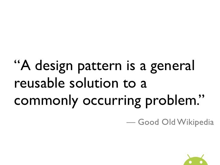 23. 23. “A design pattern is a generalreusable solution to acommonly occurring problem.” — Good Old Wikipedia