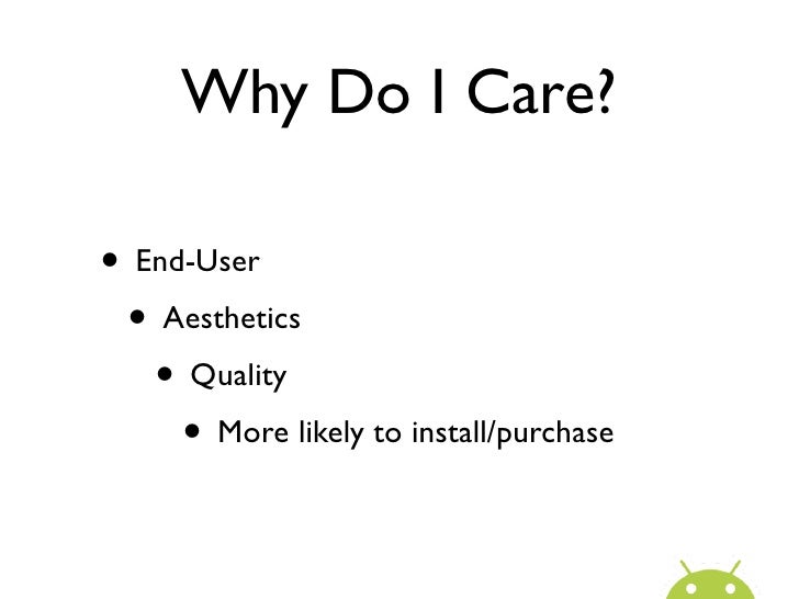 3. 3. Why Do I Care?• End-User • Aesthetics • Quality • More likely to install/purchase