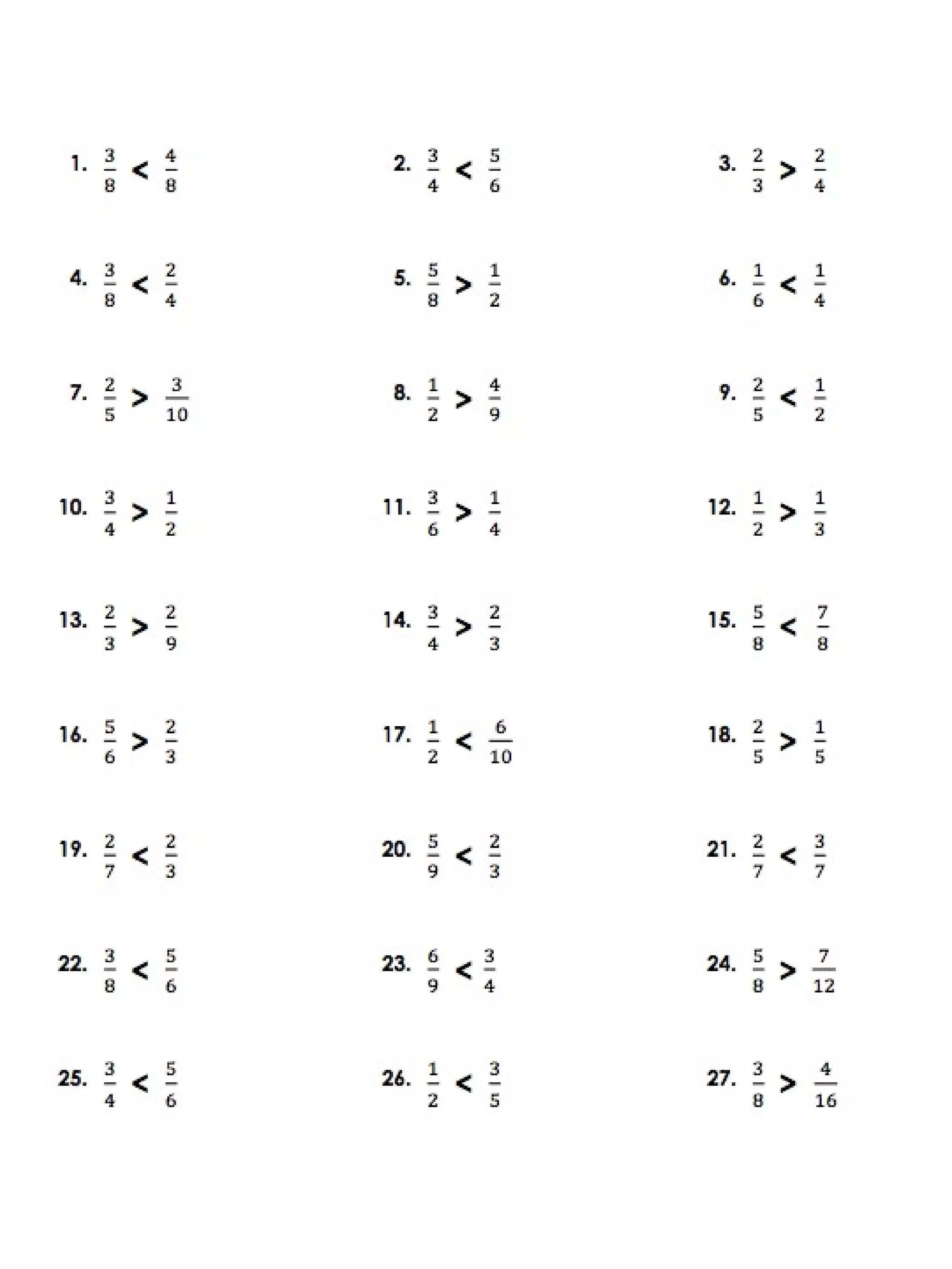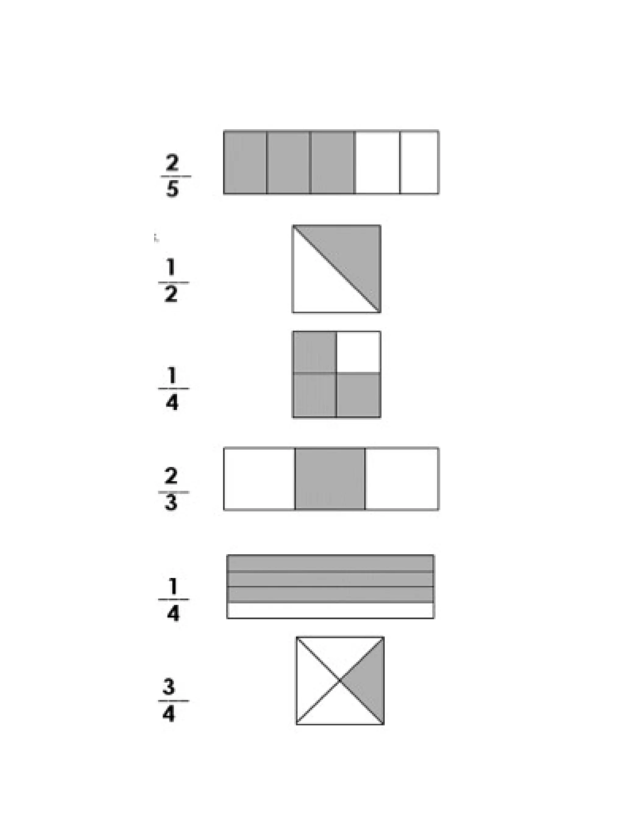 Este documento contém vários exercícios sobre frações equivalentes para crianças. Inclui tarefas como identificar frações não pintadas, comparar frações usando símbolos como > e <, e associar frações como 1/2, 1/3 e 1/4 a figuras geométricas divididas em partes iguais.