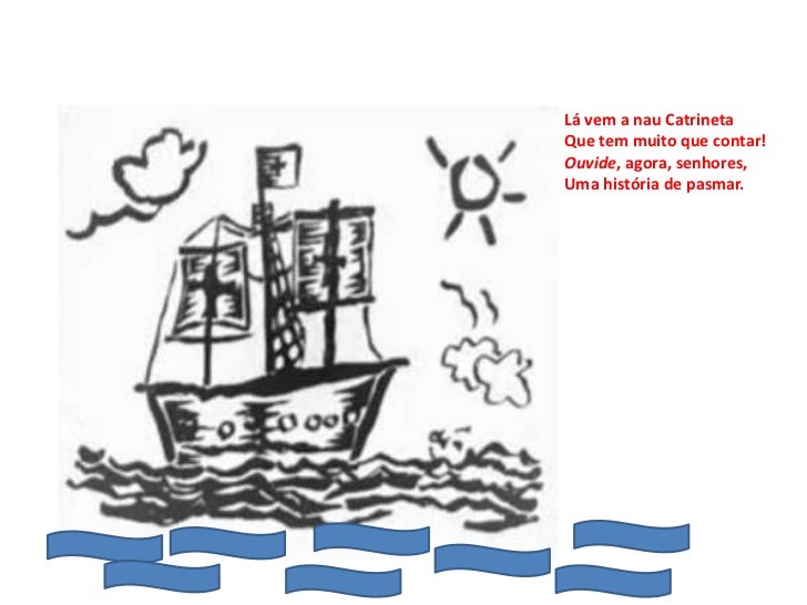 Lá vem a nau CatrinetaQue tem muito que contar!Ouvide, agora, senhores,Uma história de pasmar.
