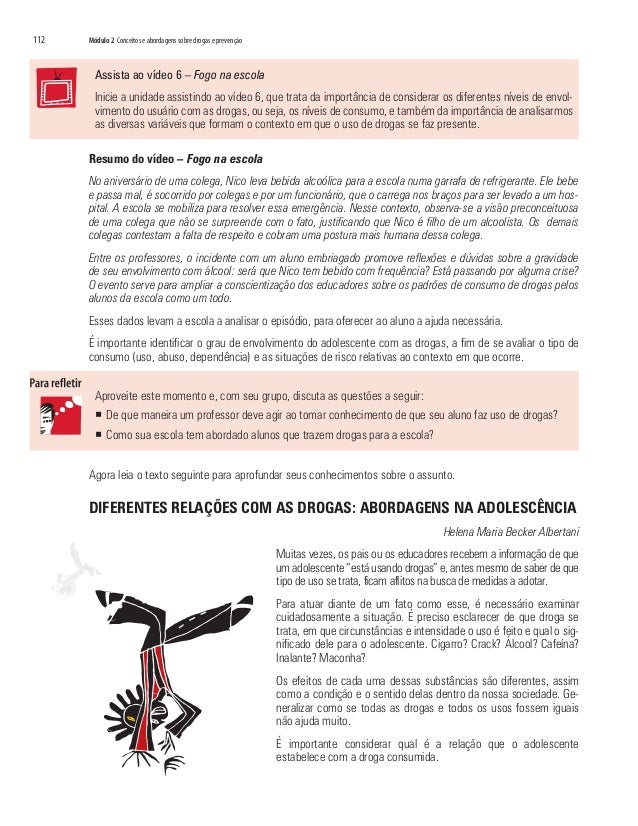 Apostila elaborada pelo Curso de Prevenção de drogas para educadores da rede pública de ensino, patrocinado pela UFJF- Universidade Federal de Juiz de Fora em parceria com a UAB - Universidade Aberta do Brasil. 2014.