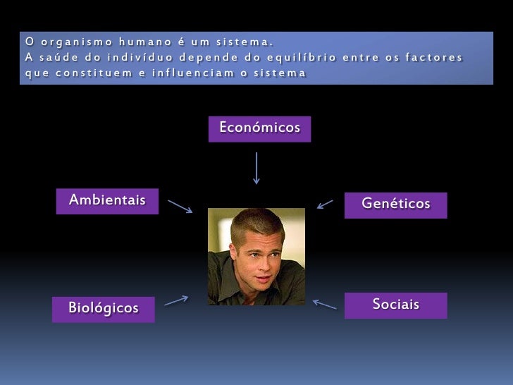 4. 4. O organismo humano é um sistema. A saúde do indivíduo depende do equilíbrio entre os factores que constituem e influenciam o sistema Económicos Ambientais Genéticos Biológicos Sociais