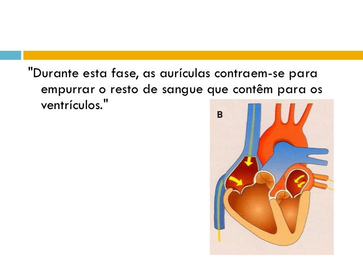 4. 4. quot;Durante esta fase, as aurículas contraem-se para empurrar o resto de sangue que contêm para os ventrículos.quot;