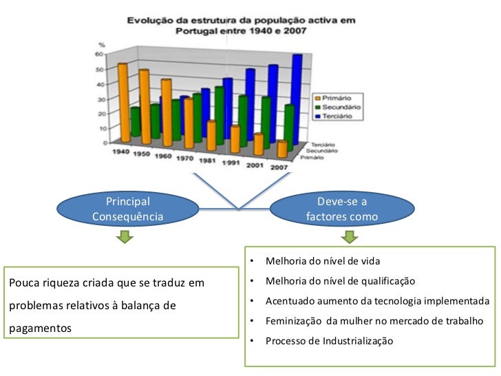 4. 4. Na actualidade Diminuição dos Acentuado aumento sectores do sector • Primário e Terciário • Secundário Principal Deve-se a Consequência factores como • Melhoria do nível de vidaPouca riqueza criada que se traduz em • Melhoria do nível de qualificaçãoproblemas relativos à balança de • Acentuado aumento da tecnologia implementada • Feminização da mulher no mercado de trabalhopagamentos • Processo de Industrialização