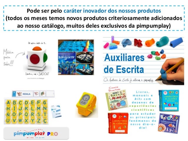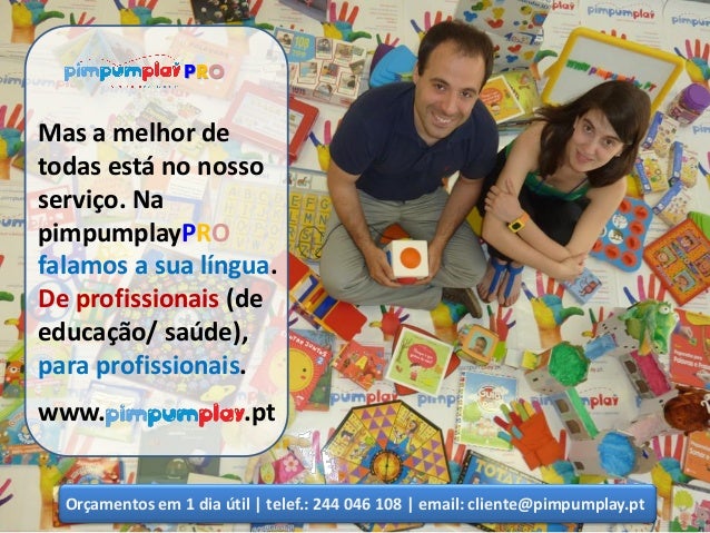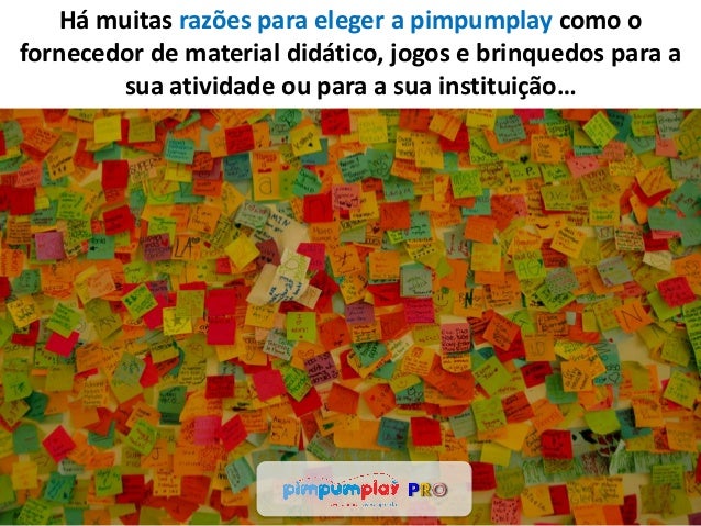 A pimpumplay apresenta um novo serviço... a pimpumplay PRO. PRO de profissional; PRO de proficiência; PRO de produtividade. Estamos do lado dos profissionais de Educação e Saúde que sabem do poder do jogo e do brincar na promoção do desenvolvimento, aprendizagem e bem-estar. Estamos do seu lado... de profissionais para profissionais!