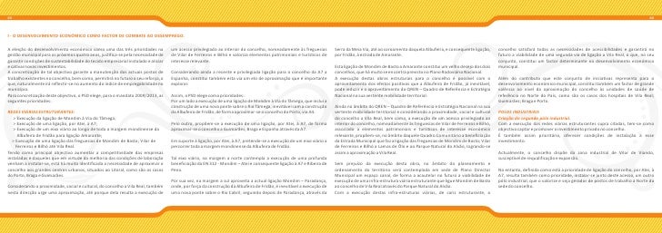 4. 4. 05 06 I - O DESENVOLVIMENTO ECONÓMICO COMO FACTOR DE COMBATE AO DESEMPREGO. A eleição do desenvolvimento económico como uma das três prioridades na um acesso privilegiado ao interior do concelho, nomeadamente às freguesias Serra da Meia Via, até ao coroamento daquela Albufeira, e consequente ligação, concelho satisfará todas as necessidades de acessibilidades e garantirá no gestão municipal para os próximos quatro anos, justifica-se pela necessidade de de Vilar de Ferreiros e Bilhó e valoriza elementos patrimoniais e turísticos de por Fridão, à estrada de Amarante. futuro a viabilidade de uma segunda via de ligação a Vila Real, o que, no seu garantir condições de sustentabilidade do tecido empresarial instalado e aliciar interesse relevante. conjunto, constitui um factor determinante no desenvolvimento económico e cativar novos investimentos. Esta ligação de Mondim de Basto a Amarante constitui um velho desejo dos dois municipal. A concretização de tal objectivo garante a manutenção dos actuais postos de Considerando ainda a recente e privilegiada ligação para o concelho da A7 a concelhos, que há muito se encontra previsto no Plano Rodoviário Nacional. trabalho existentes no concelho, bem como, permitirá no futuro o seu reforço, o Espanha, constitui também esta via um elo de aproximação que é importante A execução destas obras estruturais para o concelho é possível com o Além do contributo que este conjunto de iniciativas representa para o que, naturalmente irá reflectir-se no aumento do índice de empregabilidade no explorar. aproveitamento dos efeitos positivos que a Albufeira de Fridão, já inevitável, desenvolvimento económico municipal, constitui também um factor de grande município. pode induzir e o aproveitamento do QREN – Quadro de Referência e Estratégia valência ao nível da aproximação do concelho às unidades de saúde de Para concretização deste objectivo, o PSD elege, para o mandato 2009/2013, as Assim, o PSD elege como prioridades: Nacional na sua vertente mobilidade territorial. referência no Norte do País, como são os casos dos hospitais de Vila Real; seguintes prioridades: Por um lado a execução de uma ligação de Mondim à Via do Tâmega, que inclui a Guimarães; Braga e Porto. construção de uma nova ponte sobre o Rio Tâmega, inevitável com a construção Ainda no âmbito do QREN – Quadro de Referência e Estratégia Nacional na sua REDES VIÁRIAS ESTRUTURANTES: da Albufeira de Fridão, de forma aproximar-se o concelho do Porto, via A4. vertente mobilidade territorial e considerando a proximidade, social e cultural POLOS INDUSTRIAIS > Execução da ligação de Mondim à Via do Tâmega; do concelho a Vila Real, bem como, a execução de um acesso privilegiado ao Criação do segundo pólo industrial. > Execução de uma ligação, por Atei, à A7; Pelo outro, propõem-se a execução de uma ligação, por Atei, à A7, de forma interior do concelho, nomeadamente às freguesias de Vilar de Ferreiros e Bilhó, Com a execução das redes viárias estruturantes supra citadas, tem-se como > Execução de um eixo viário ao longo de toda a margem mondinense da aproximar-se o concelho a Guimarães; Braga e Espanha através da A7. associado a elementos patrimoniais e turísticos de interesse económico objectivo captar e promover o investimento privado no concelho. Albufeira de Fridão para ligação Amarante; relevante, propõem-se, no âmbito daquele Quadro Comunitário a beneficiação É também assim prioritário, oferecer condições de instalação a esse > Execução de uma ligação das freguesias de Mondim de Basto; Vilar de Em suporte à ligação, por Atei, à A7, pretende-se a execução de um eixo viário a da Estrada Municipal que faz a ligação das freguesias de Mondim de Basto; Vilar investimento. Ferreiros e Bilhó até Vila Real. percorrer toda a margem mondinense da Albufeira de Fridão. de Ferreiros e Bilhó a Lamas de Ôlo e ao Parque Natural do Alvão, logrando-se Tendo como principal objectivo aumentar a competitividade das empresas assim a aproximação a Vila Real. Actualmente, o concelho dispõe da zona industrial de Vilar de Viando, instaladas e daqueles que em virtude da melhoria das condições de laboração Tal eixo viário, na margem a norte contempla a execução de uma profunda susceptível de requalificação e expansão. venham a instalar-se, está há muito identificada a necessidade de aproximar o beneficiação da EN 312 - Mondim – Atei e consequente ligação à A7 e Ribeira de Sem prejuízo da execução desta obra, no âmbito do planeamento e concelho aos grandes centros urbanos, situados ao Litoral, como são os casos Pena. ordenamento do território será contemplada em sede de Plano Director No entanto, definida como está a prioridade de ligação do concelho, por Atei, à do Porto, Braga e Guimarães. Municipal um espaço canal, de forma a acautelar no futuro a viabilidade de A7, resulta também como prioridade, instalar-se junto deste acesso, um outro Por sua vez, na margem a sul aproveita a actual ligação Mondim – Paradança, execução de uma infra-estrutura viária estruturante que ligue Mondim de Basto pólo industrial, que o valorize e seja gerador de postos de trabalho a Norte da Considerando a proximidade, social e cultural, do concelho a Vila Real, também onde, por força da construção da Albufeira de Fridão, é inevitável a execução de ao concelho de Vila Real através do Parque Natural do Alvão. sede do concelho. nesta direcção urge uma aproximação, até porque dela resulta a execução de uma nova ponte sobre o Rio Cabril, seguindo depois de Paradança, através da Com a execução destas infra-estruturas viárias, de cariz estruturante, o