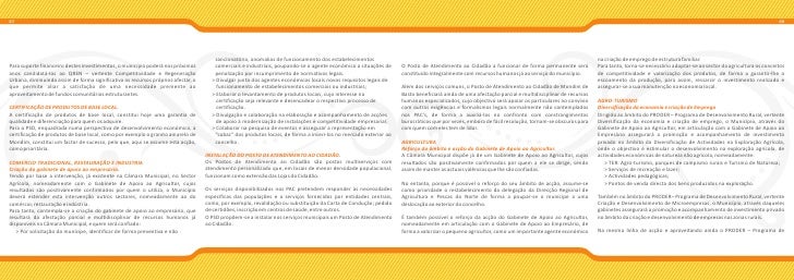 5. 5. 07 08 sancionatória, anomalias de funcionamento dos estabelecimentos na criação de emprego de estrutura familiar. Para suporte financeiro destes investimentos, o município poderá nos próximos comerciais e industriais, poupando-se o agente económico a situações de O Posto de Atendimento ao Cidadão a funcionar de forma permanente será Para tanto, torna-se necessário adoptar-se ao sector da agricultura os conceitos anos candidatá-los ao QREN – vertente Competitividade e Regeneração penalização por incumprimento de normativos legais. constituído integralmente com recursos humanos já ao serviço do município. de competitividade e valorização dos produtos, de forma a garantir-lhe o Urbana, diminuindo assim de forma significativa os recursos próprios afectar, o > Divulgar junto dos agentes económicos locais novos requisitos legais de escoamento da produção, para assim, ressarcir o investimento realizado e que permite aliar a satisfação de uma necessidade premente ao funcionamento de estabelecimentos comerciais ou industriais; Além dos serviços comuns, o Posto de Atendimento ao Cidadão de Mondim de assegurar-se a sua manutenção na economia local. aproveitamento de fundos comunitários estruturantes. > Elaborar o levantamento de produtos locais, cujo interesse na Basto beneficiará ainda de uma afectação parcial e multidisciplinar de recursos certificação seja relevante e desencadear o respectivo processo de humanos especializados, cujo objectivo será apoiar os particulares no convívio AGRO-TURISMO CERTIFICAÇÃO DE PRODUTOS DE BASE LOCAL. certificação. com outras exigências e formalismos legais normalmente não contemplados Diversificação da economia e criação de Emprego A certificação de produtos de base local, constitui hoje uma garantia de > Divulgação e colaboração na elaboração e acompanhamento de acções nos PAC's, de forma a auxiliá-los no confronto com constrangimentos Dirigido ao âmbito do PRODER – Programa de Desenvolvimento Rural, vertente qualidade e diferenciação para quem os adquire. de apoio à modernização de instalações e competitividade empresarial; burocráticos que por vezes, embora de fácil resolução, tornam-se obscuros para Diversificação da economia e criação de emprego, o Município, através do Para o PSD, enquadrada numa perspectiva de desenvolvimento económico, a > Colaborar na pesquisa de eventos e assegurar a representação em com quem com eles tem de lidar. Gabinete de Apoio ao Agricultor, em articulação com o Gabinete de Apoio ao certificação de produtos de base local, como por exemplo o granito amarelo de “cabaz” dos produtos locais, de forma a inseri-los no mercado exterior ao Empresário assegurará a promoção e acompanhamento de investimento Mondim, constitui um factor de sucesso, pelo que, aqui se assume esta acção, concelho. AGRICULTURA privado no âmbito da Diversificação de Actividades na Exploração Agrícola, como prioritária. Reforço do âmbito e acção do Gabinete de Apoio ao Agricultor. onde o objectivo é estimular o desenvolvimento na exploração agrícola, de INSTALAÇÃO DO POSTO DE ATENDIMENTO AO CIDADÃO. A Câmara Municipal dispõe já de um Gabinete de Apoio ao Agricultor, cujos actividades económicas de natureza não agrícola, nomeadamente: COMERCIO TRADICIONAL, RESTAURAÇÃO E INDUSTRIA Os Postos de Atendimento ao Cidadão são postos multiserviços com resultados são positivamente confirmados por quem a ele se dirige, sendo > TER: Agro-turismo, parques de campismo rurais e Turismo de Natureza; Criação do gabinete de apoio ao empresário. atendimento personalizado que, em locais de menor densidade populacional, assim de manter as actuais valências que lhe são confiadas. > Serviços de recreação e lazer; Tendo por base a intervenção, já existente na Câmara Municipal, no Sector funcionam como extensão das Lojas do Cidadão. > Actividades pedagógicas; Agrícola, nomeadamente com o Gabinete de Apoio ao Agricultor, cujos No entanto, porque é possível o reforço do seu âmbito de acção, assume-se > Pontos de venda directa dos bens produzidos na exploração. resultados são positivamente confirmados por quem o utiliza, o Município Os serviços disponibilizados nos PAC pretendem responder às necessidades como prioridade o restabelecimento da delegação da Direcção Regional de deverá estender esta intervenção outros sectores, nomeadamente ao do específicas das populações e a serviços fornecidos por entidades centrais, Agricultura e Pescas do Norte de forma a poupar-se o munícipe a uma Também no âmbito do PRODER– Programa de Desenvolvimento Rural, vertente comércio; restauração e indústria. como, por exemplo, revalidação ou substituição da Carta de Condução; pedido deslocação ao exterior do concelho. Criação e Desenvolvimento de Microempresas, o Município, através daqueles Para tanto, contempla-se a criação do gabinete de apoio ao empresário, que de certidões, inscrição em centros de saúde, entre outros. gabinetes assegurará a promoção e acompanhamento de investimento privado resultará da afectação parcial e multidisciplinar de recursos humanos já O PSD propõem-se a instalar nos serviços municipais um Posto de Atendimento É também possível o reforço da acção do Gabinete de Apoio ao Agricultor, no âmbito da criação e desenvolvimento de empresas nas zonas rurais. disponíveis na Câmara Municipal, e quem será confiado: ao Cidadão. nomeadamente em articulação com o Gabinete de Apoio ao Empresário, de > Por solicitação do munícipe, identificar de forma preventiva e não forma a valorizar o pequeno agricultor, como um importante agente económico Na mesma linha de acção e aproveitando ainda o PRODER – Programa de