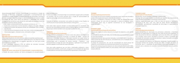 6. 6. 09 10 Desenvolvimento Rural, vertente Diversificação da economia e criação de empreendedorismo. TURISMO TURISMO E LAZER emprego, o Município, assegurará a promoção e acompanhamento de É assim prioridade o município dirigir-se à juventude e pugnar pela sua fixação Reorganização do posto de turismo. Implantação de Praias Fluviais. investimento privado dirigido ao desenvolvimento de Actividades Turísticas e no concelho. Tal, só se torna possível com a criação de oportunidades de O município tem há muito instalado um posto de turismo, que se tem limitado a Por Mondim, correm três Rios: O Tâmega; o Cabril e o Olo. de Lazer, em que o objectivo atingir é o desenvolvimento do turismo e outras negócios e emprego, como enumeramos atrás. prestar informação local a quem visita Mondim de Basto. Ao longo dos percursos cavados no concelho por aqueles rios, encontram-se actividades de lazer como forma de potenciar a valorização dos recursos De forma a rentabilizar a estrutura já criada, o Posto de Turismo Municipal, locais de beleza rara e hábeis a momentos únicos de lazer. endógenos dos territórios rurais através da valorização dos produtos locais, do Pretende-se também incrementar uma política de apoios a essa fixação, ao passará a dispor de uma área de exposição e venda de produtos locais, Constitui assim prioridade para o PSD, ao nível do turismo e actividades património cultural e natural, através: nível fiscal, de serviços a prestar pela autarquia, entre outros. colaborando assim com os agentes económicos na sua divulgação e recreativas e de lazer, criar uma rede de praias fluviais devidamente > Da criação ou desenvolvimento de produtos turísticos (p. ex.: comercialização. requalificadas, aproveitando a qualidade da nossa água e a quantidade de ecoturismo, enoturismo, turismo equestre, religioso, de saúde, cultural); Será ainda dada especial atenção ao desenvolvimento de actividades em cursos que dispomos. > Alojamento turístico de pequena escala nas modalidades TER e turismo parceria com associações de jovens, para os manter ligados à sua terra e cativa- de natureza; los para que a olhem também como uma oportunidade de vida. TURISMO E LAZER TURISMO > Infra-estruturas de pequena escala, tais como, centros de observação da Implantação de uma Parque de caravanismo. Roteiros de Património Ambiental. natureza/paisagem, rotas/percursos, animação turística. AMBIENTE O Município dispõe há vários anos de um parque de campismo, junto do Rio Numa perspectiva de valorização do património ambiental, o Município Recuperação de passivos ambientais. Cabril. assumirá um papel activo na criação de uma rede de percursos pedestres, e AGRICULTURA Configurando-se o Ambiente e o Turismo como dois pilares estratégicos do Da execução da Albufeira de Fridão, não é ainda certa a sua manutenção no local redes de pontos de interesse, como sejam, percursos das silhas, arte rupestre, Requalificação do mercado municipal. desenvolvimento económico municipal, no âmbito do QREN – Quadro de em que está instalado. rios e levadas, entre outros, de modo a aumentar a oferta e qualidade das O município dispõe de uma infra-estrutura, denominada Mercado Municipal. Referência e Estratégia Nacional o Município assumirá um papel activo na Independentemente dessa possível alteração, é prioridade para o concelho o actividades de animação e pontos de interesse a visitar, tornando o concelho Actualmente tal estrutura em nada tem contribuído para o seu objectivo inicial, recuperação de Passivos Ambientais, nomeadamente, a recuperação de áreas reforço deste tipo de infra-estruturas, nomeadamente com a instalação de um mais atractivo para quem nos visita. nomeadamente, disponibilizar ao pequeno agricultor um local para venda contaminadas com a extracção de massas minerais – Pedreiras - cujo parque de caravanismo. Com a execução dos Roteiros de Património Ambiental, fundamentados na directa dos seus produtos. funcionamento ao longo dos anos não garantiu a aplicação do princípio do O parque de caravanismo, em caso de manutenção do actual parque de promoção turística do concelho, leva-se mais além a imagem de marca já É assim prioridade repensar o fim do edifício do mercado municipal, poluidor pagador e o princípio da responsabilidade. campismo, será instalado com total autonomia deste e em local diverso. conhecida, que é, a qualidade da gastronomia, diversidade paisagística e o adaptando-o para resposta a outras necessidades. No caso de o actual parque de campismo ser absorvido pela Albufeira de Fridão, contacto com a natureza em condições bastantes favoráveis para os padrões Com esta acção, garante-se por um lado a valorização ambiental e sócio- então o município deverá instalar um novo parque, onde sejam contempladas actuais. JUVENTUDE económica do concelho, e pelo outro, asseguram-se as condições de segurança as duas valências. Fixação dos jovens como factor de competitividade e empreendedorismo. e saúde públicas nos locais que actualmente se apresentam contaminados. A fixação dos jovens constitui um factor privilegiado de competitividade e