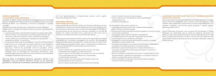 7. 7. 11 12 COMÉRCIO TRADICIONAL se a sua sustentabilidade e competitividade perante outros agentes > Jovens e adultos à procura de novo emprego. ELABORAÇÃO E EXECUÇÃO DE UM PROJECTO DE TOPONÍMIA ENUMERAÇÃO Competitividade e Regeneração Urbana económicos de maior dimensão. > Jovens e adultos com necessidade de apoio à qualificação e DE POLICIA DO CONCELHO. No âmbito do QREN – Quadro de Referência e Estratégia Nacional o Município empreendedorismo. Com a elaboração do projecto de toponímia do concelho pretende-se a criação assumirá um papel activo Regeneração Urbana do Núcleo Histórico e da Vila de PROMOÇÃO DO EMPREGO > Entidades empregadoras. de uma ferramenta topográfica para a Câmara e Juntas de Freguesias, onde Mondim de Basto, cuja candidatura se encontra já aprovada e aguardar Gabinete de Inserção Profissional constem todos os elementos importantes do concelho, designadamente: ruas; execução. O gabinete de Inserção Profissional (GIP), que resultará da afectação parcial e Das Actividades a desenvolver, apontam-se: estradas e caminhos, monumentos, igrejas paroquiais e capelas, espaços A área de intervenção abrange toda a superfície de carácter público do multidisciplinar de recursos humanos já disponíveis na Câmara Municipal, terá > Informação profissional para jovens e adultos desempregados. desportivos, entre outros. Núcleo Histórico, alargada aos espaços públicos da zona de expansão urbana por objectivo principal apoiar jovens e adultos desempregados na definição ou > Apoio à procura activa de emprego. da Vila, sendo que: desenvolvimento do seu percurso de inserção e reinserção no mercado de > Acompanhamento personalizado de desempregados em fase de inserção Após a elaboração do projecto, cujos encargos não são elevados, a Câmara > A primeira operação é essencialmente dirigida aos espaços públicos do trabalho em estreita articulação com os parceiros da rede social, com a ou reinserção profissional. Municipal, em colaboração com as Juntas de Freguesia, promoverá um Núcleo Histórico, com intervenção ao nível da modernização de infra- autarquia, com a Segurança Social e com o Centro de Emprego. > Captação de ofertas junto de entidades empregadoras. processo de discussão pública destinado à recolha de sugestões tendo em vista estruturas; melhoria do ambiente urbano; qualificação de espaços > Divulgação de ofertas de emprego e actividades de colocação. definir e atribuir denominação em todas as ruas da vila e das freguesias, bem verdes; melhoria da acessibilidade e reabilitação de um pequeno Com este Gabinete pretende-se também manter uma relação de proximidade e > Encaminhamento para ofertas de qualificação. como, atribuir números de policia de forma ordenada e adequada a todos os equipamento público - a casa da Eira; colaboração com as entidades empregadoras do concelho, com intenção de > Divulgação e encaminhamento para medidas de apoio ao emprego, prédios urbanos. > A segunda operação incide, essencialmente, na Estrutura de Mobilidade da divulgar junto das mesmas os programas e medidas de apoio em vigor no IEFP, qualificação e empreendedorismo. Sede da Vila; com intervenções ao nível da melhoria da acessibilidade e captar ofertas de emprego/formação, apoiar na elaboração de candidaturas e > Divulgação de programas comunitários que promovam a mobilidade no mobilidade viária e pedonal, visando maiores níveis de conforto e no processo de selecção e recrutamento de recursos humanos. emprego e na formação profissional no espaço europeu. segurança; melhoria da qualidade visual da paisagem urbana; Serão destinatários: > Motivação e apoio à participação em ocupações temporárias ou modernização das infra-estruturas urbanas, incluindo a instalação de infra- > Jovens e adultos sem qualificação profissional e/ou com baixa actividades em regime de voluntariado, que facilitem a inserção no estruturas para as tecnologias de informação; prevendo-se, ainda, escolaridade não integrados no sistema de ensino. mercado de trabalho. pequenas intervenções com vista a uma maior eficiência e sustentabilidade > Jovens e adultos com dificuldades de inserção e em risco de exclusão > Apoio aos utentes na elaboração de currículos, na elaboração de cartas energética das estruturas urbanas da Vila. social, designadamente com deficiências e incapacidade, de apresentação e candidaturas espontâneas, na resposta a anúncios e comportamentos desviantes. ofertas e na preparação para as entrevistas. Com esta acção, na perspectiva económica, pretende-se valorizar e dar > Jovens e adultos com necessidade de formação contínua, de > Outras actividades consideradas necessárias aos desempregados visibilidade à área de comércio tradicional inserido na vila, garantindo aperfeiçoamento ou de reconversão. inscritos no centro de emprego. garantindo-se condições de acessibilidade e mobilidade, de forma a preservar- > Jovens e adultos qualificados à procura do primeiro emprego.