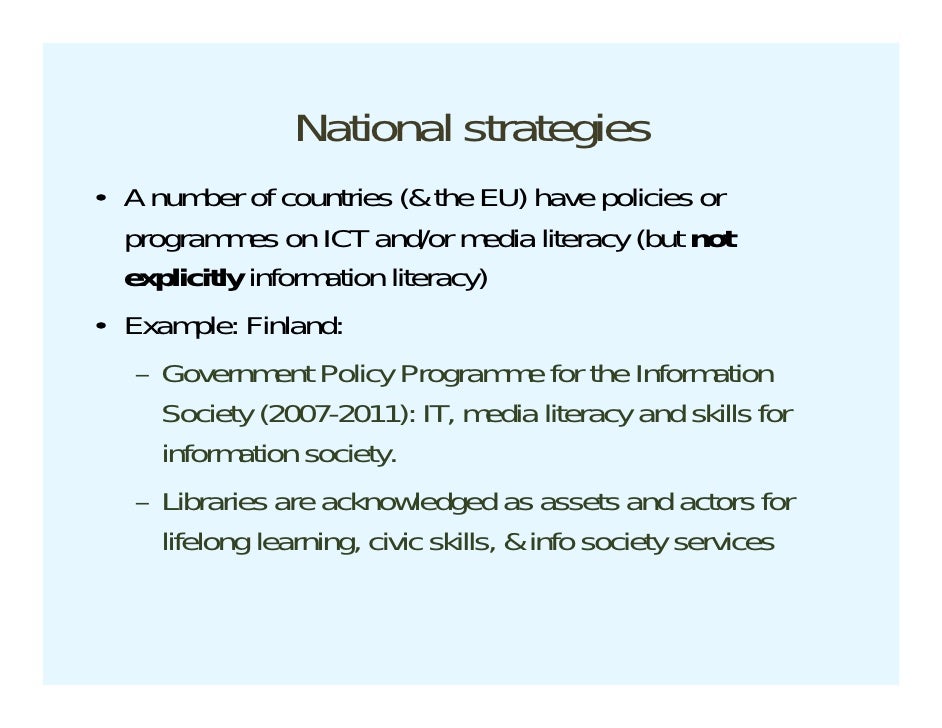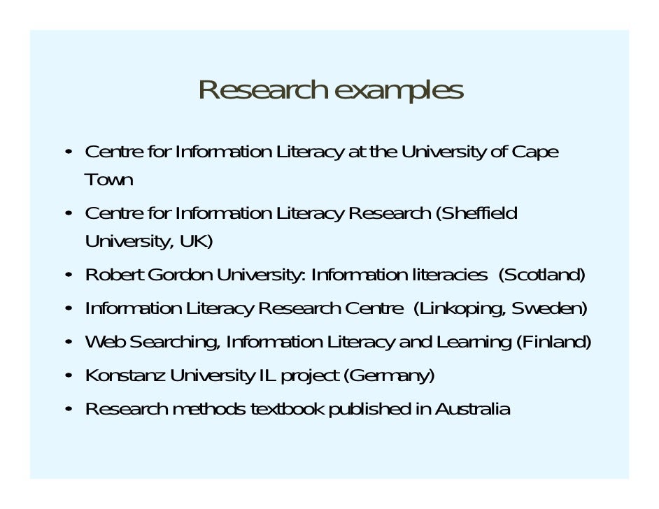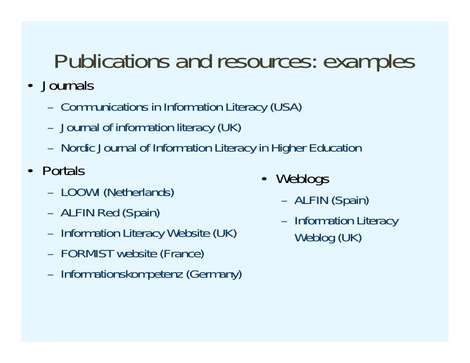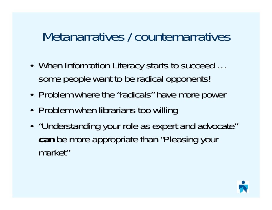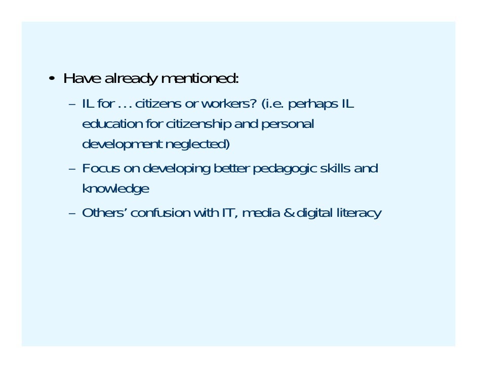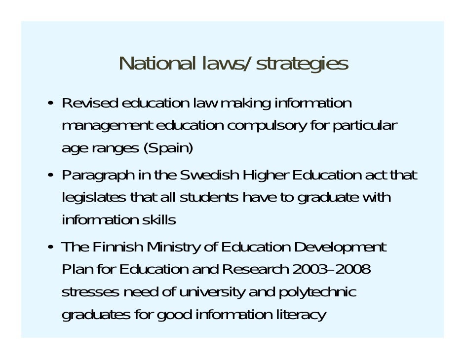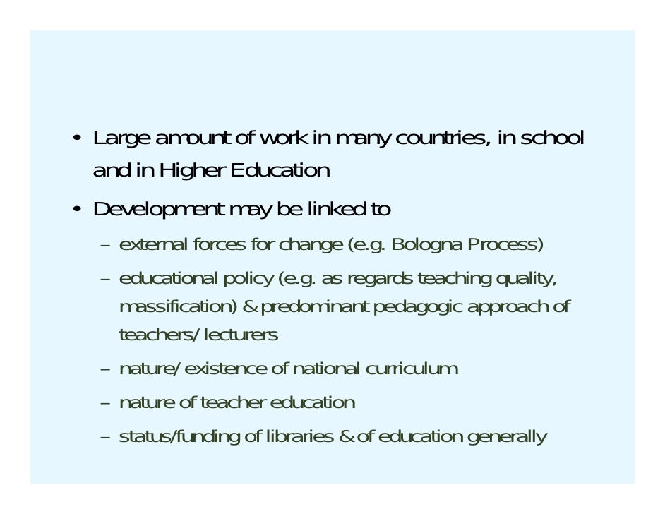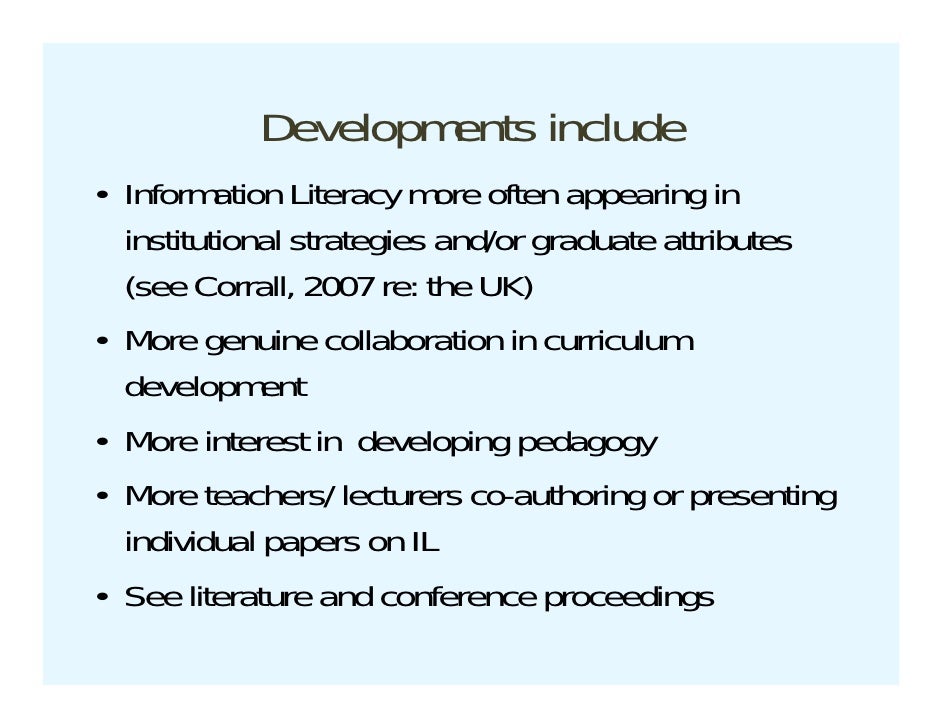 This was presented at he conference, **L'education à la culture informationnelle** [Education for/in information culture], held in l’Université Charles de Gaulle Lille3, Lille, France, on 17 October 2008. In this presentation I firstly provided evidence for the development of information in key areas that can be seen as evidence for an emerging subject area or disciopline. I secondly highlighted some activities or resources in the areas of: health, business, citizenship and education. Finally, I identified some issues for debate.