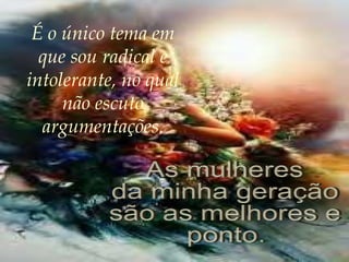 O documento descreve as mulheres nascidas entre as décadas de 1940 e 1960. Elas são belas, maduras, compreensivas e sedutoras. São herdeiras da revolução sexual e do feminismo, combinando liberdade e emancipação com paixão e sedução. Embora tenham mudado o mundo com suas ideias progressistas, também souberam amar e viver em parceria com os homens.