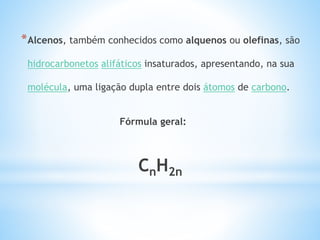 *Alcenos, também conhecidoscomo alquenos ou olefinas, são