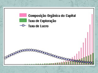 O documento discute a teoria do valor de Marx, incluindo a lei do valor e o "problema" da transformação entre valor e preço. Aborda também a queda tendencial da taxa de lucro e questiona a atualidade destes conceitos no contexto do marginalismo dominante.