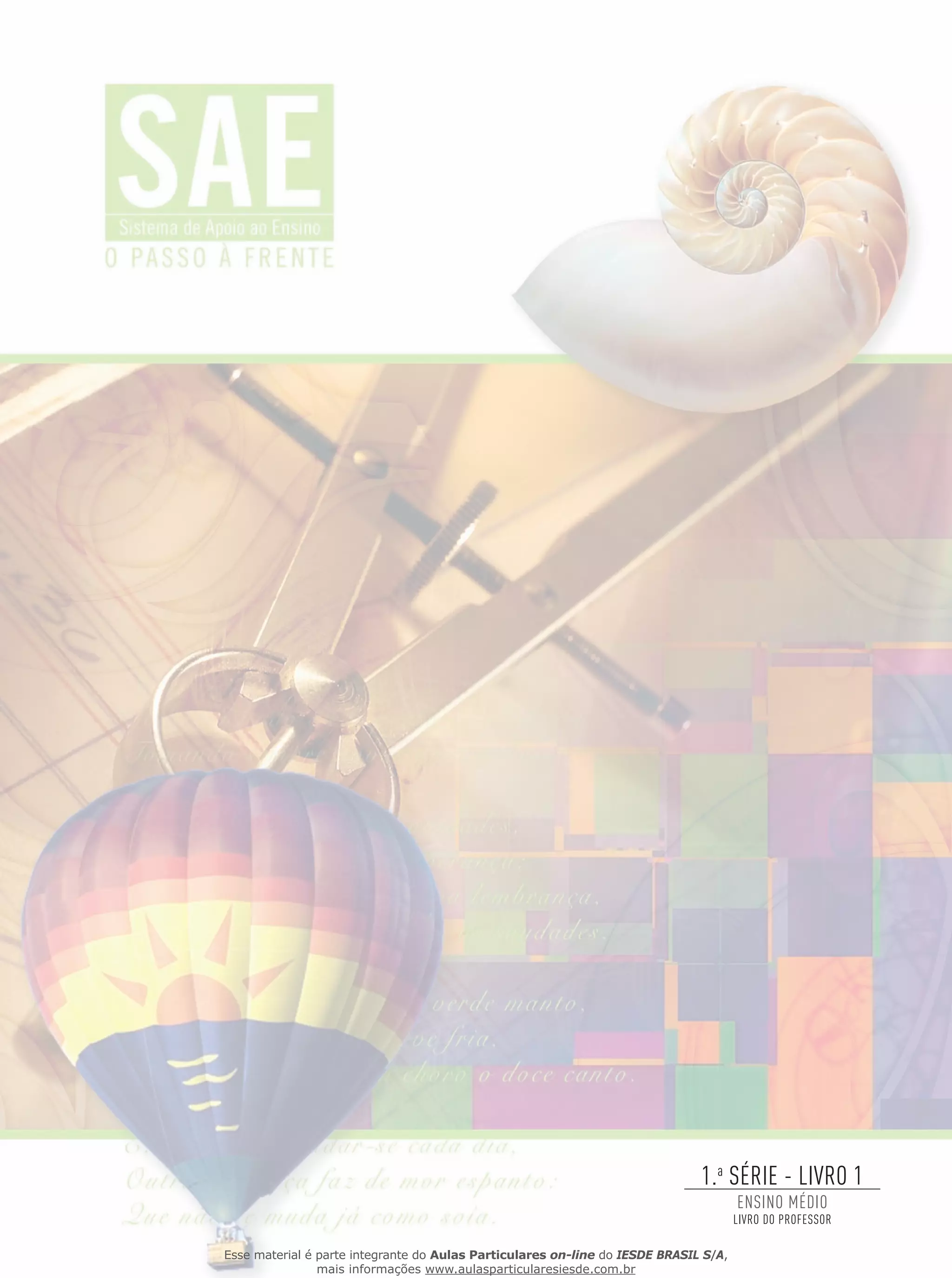 O documento apresenta um livro didático para o ensino médio que aborda diversas disciplinas como língua portuguesa, literatura, matemática, física, química, biologia, história e geografia. O livro foi produzido pela empresa IESDE Brasil S.A. e contém informações sobre os autores de cada disciplina.